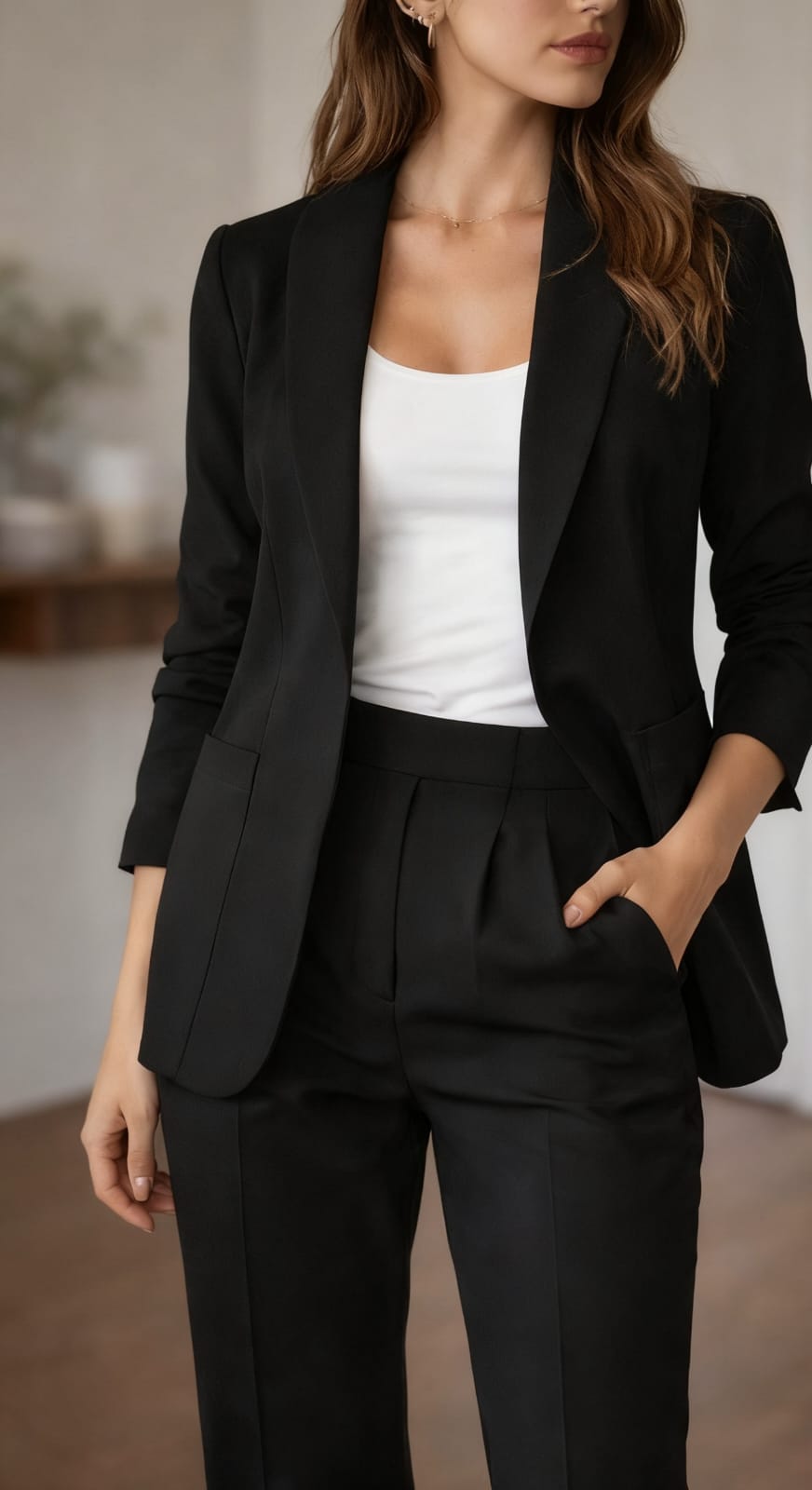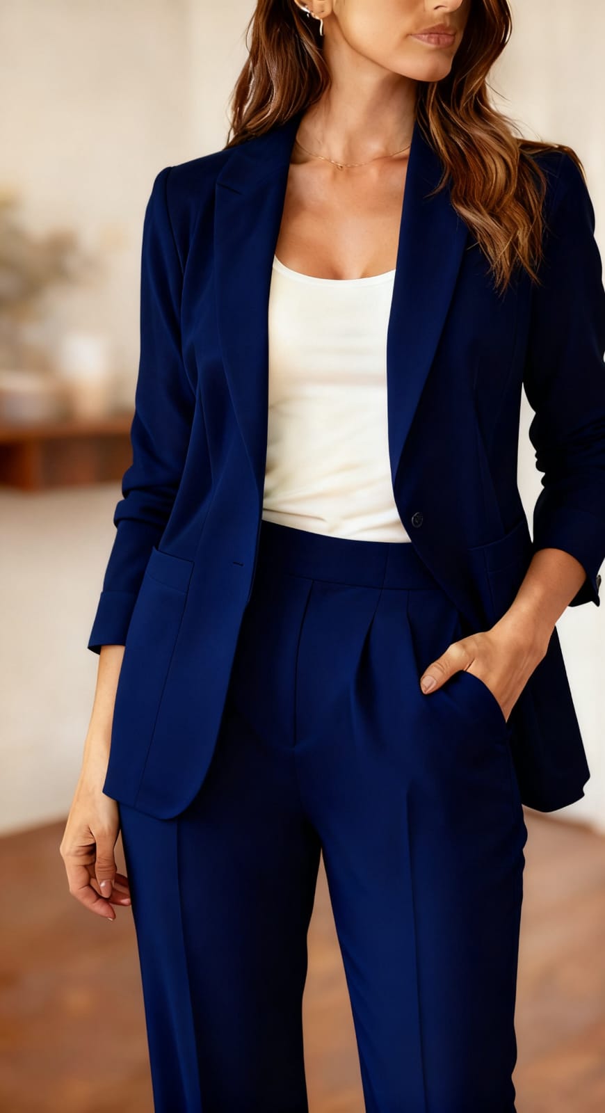Con Bolsillos en Blazer y pantalón recto.